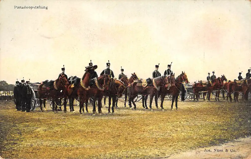Tulp. Uitg. Jos. Nuss & Co. Onze Land- en Zeemacht. Serie Veld-Artillerie No. 2. Gelopen ansichtkaart met postzegel en stempels 1909.