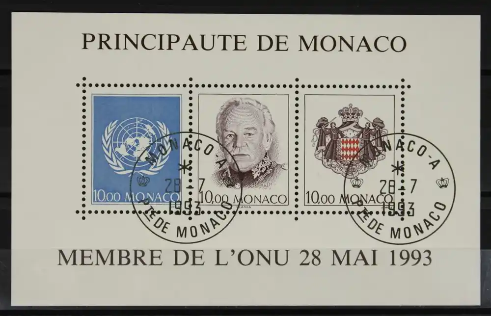 Monaco 1993, Michel Blok 60, Monaco nieuw lid v.d. Verenigde Naties, gestempeld / used