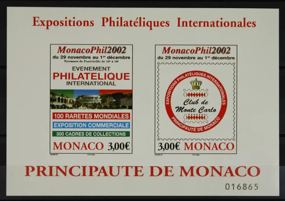 Monaco 2000, Michel Blok 85, Int. Postzegeltentoonstelling “Monacophil ’02”, postfris / MNH
