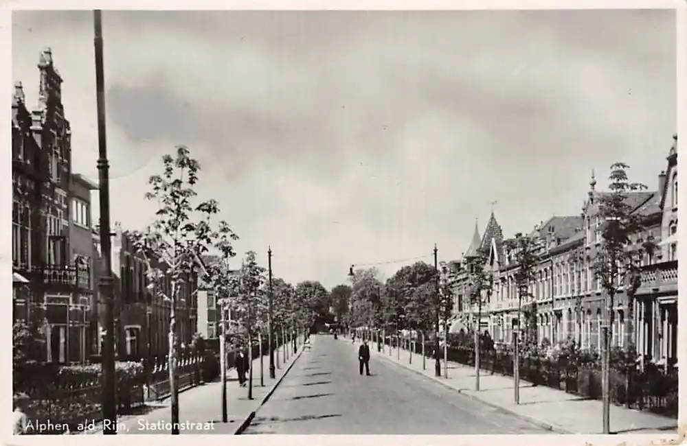 Marx Boekhandel – Alphen a.d. Rijn. DRG. Gelopen ansichtkaart met postzegel en stempel Alphen a\\/d Rijn 1954. Hoekjes iets gebruikt. Rechter onderhoekje knikje en wat bruine plekjes witte randje.