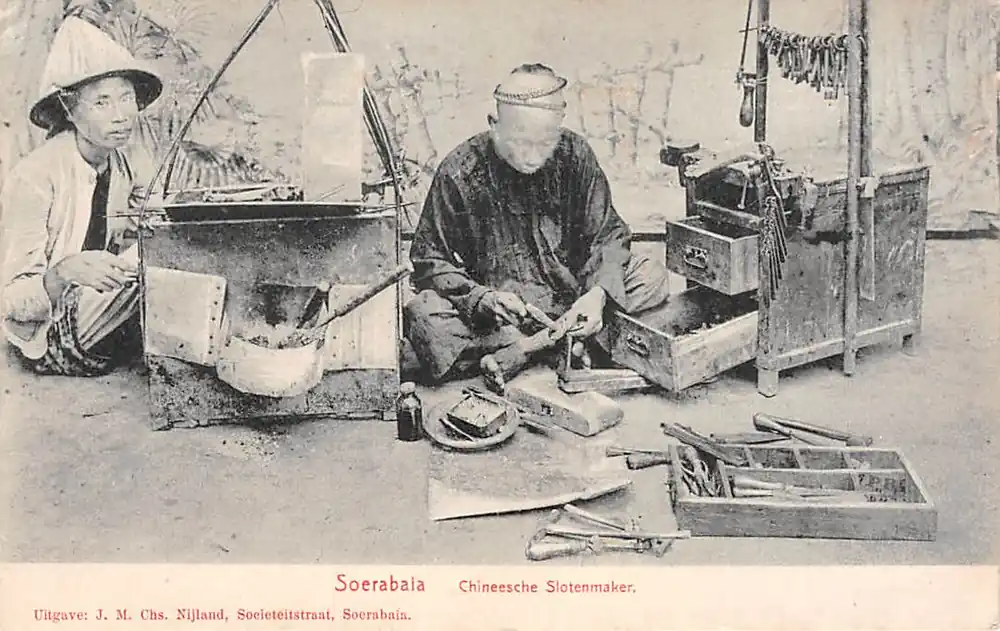 Uitgave J.M. Chs. Nijland, Soerabaia. Ongelopen ansichtkaart. Aan bovenhoeken achter geplakt gezeten; zie de scan.