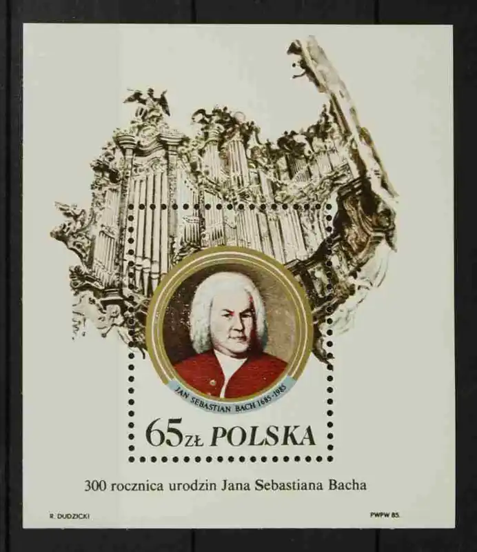 Polen 1985, Michel Blok 97 II, 300e Geboortedag Bach, postfris / MNHType II = met inschrift