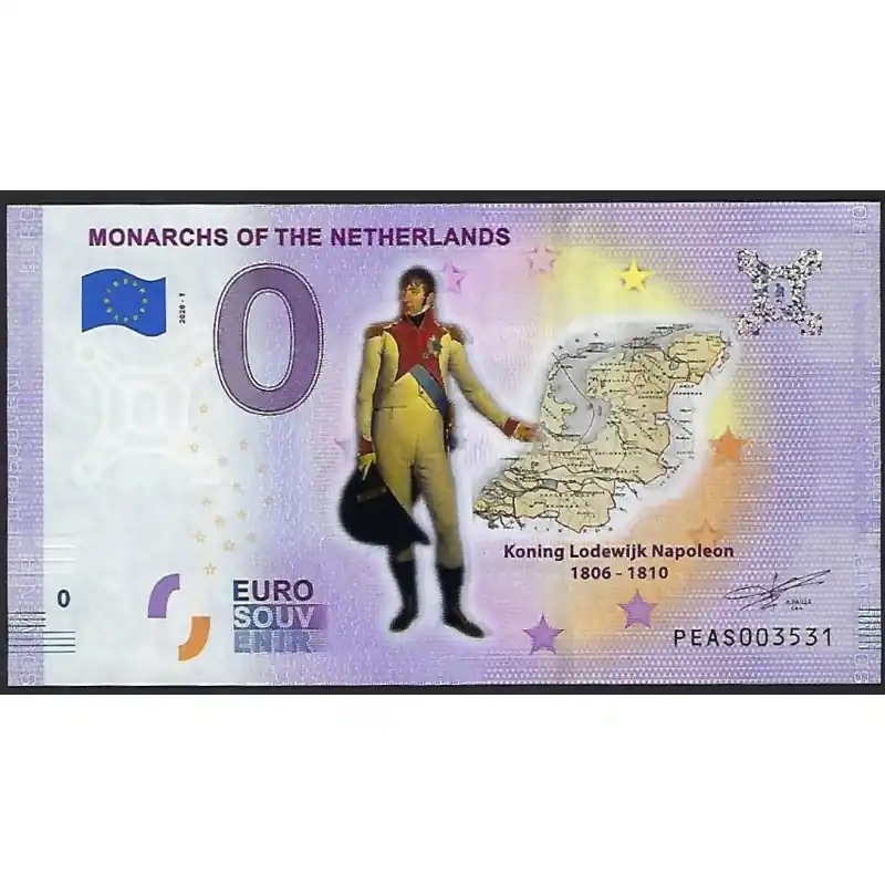 0 Euro biljet Nederland 2020 – Monarchs of the Netherlands, Lodewijk Napoleon Gekleurd