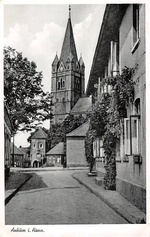 X71. A. Hollman, Ankum i. Hann. Gelopen ansichtkaart met postzegel en stempel. Twee knikken linksboven.