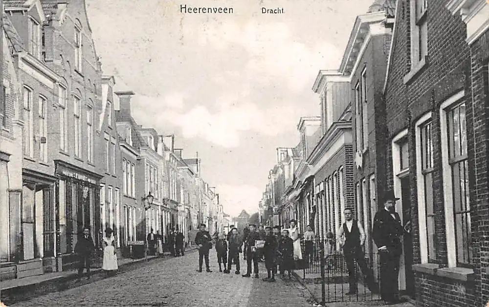 Uitg. Heerenv. Boekh. Gelopen ansichtkaart met drie postzegels en twee stempels 1912.