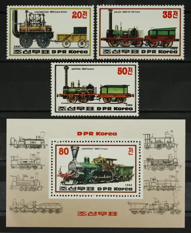 Noord-Korea 1983, Michel 2371-2374, Locomotieven, complete postfrisse serie incl. Blok 146 / MNH