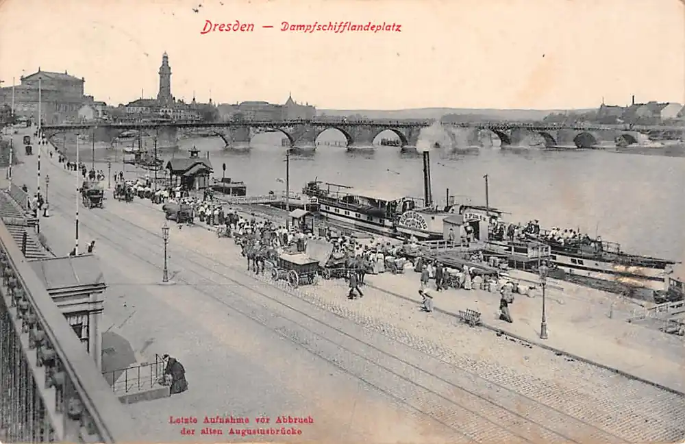 Oferta limitowana Duitsland Dresden Dampschifflandeplatz 1913 Paard en wagens Binnenvaart schepen Scheepvaart Deutschland Europa HC7744