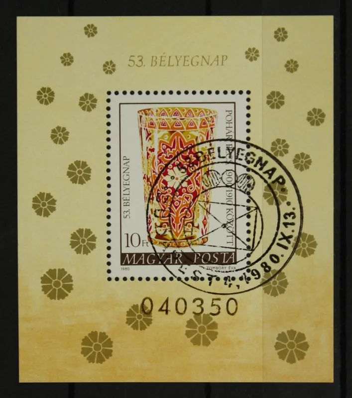 Hongarije 1980, Michel Blok 144 A, Dag v.d. Postzegel: Glaskunst, getand blok, gestempeld/used