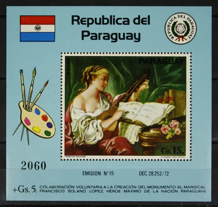 Paraguay 1975, Michel 2743 (Blok 263), Schilderij “De muziek” van François Boucher, postfris Blok / MNH