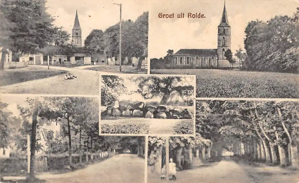 Uitgave J. Lubbers, winkelier, Rolde. Mooie gelopen ansichtkaart met stempel 1928; postzegel netjes verwijderd.