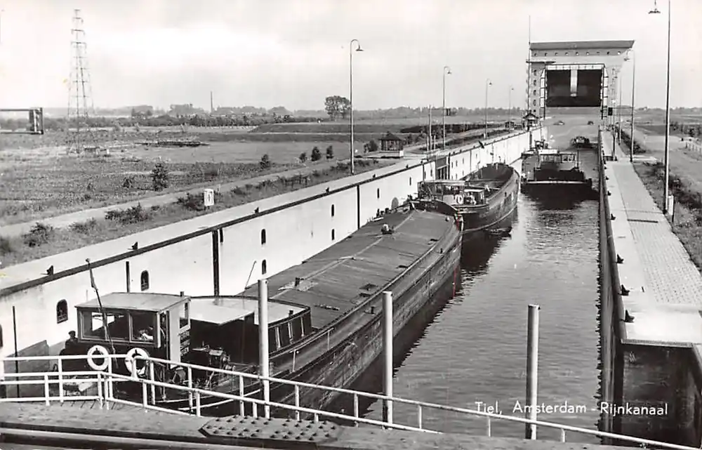 Oferta Tiel Amsterdam-Rijn kanaal met sluis en binnenvaart schepen Scheepvaart Schepen HC7156