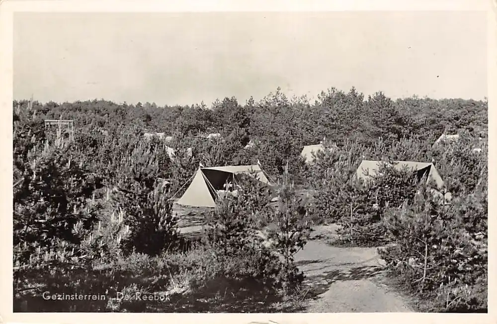 Bondskampeerplaats De Reebok Oisterwijk. Glopen ansichtkaart met postzegel en stempel 1956.