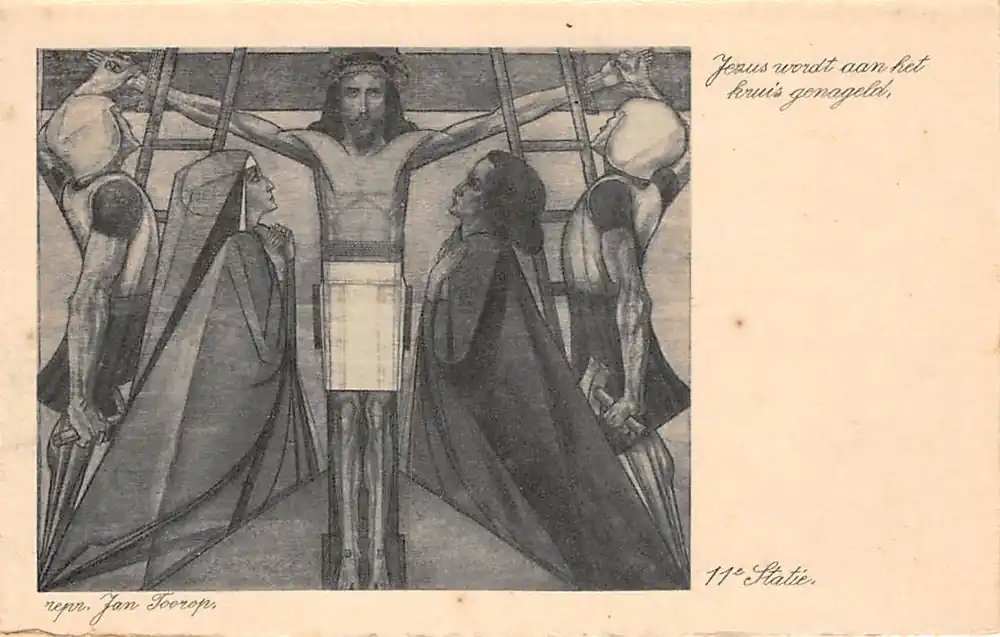 Oosterbeek bij Arnhem Illustrator Jan Toorop De veertien Staties van den kruisweg 11e Statie Jezus wordt aan het kruis genageld HC23608 Nowość