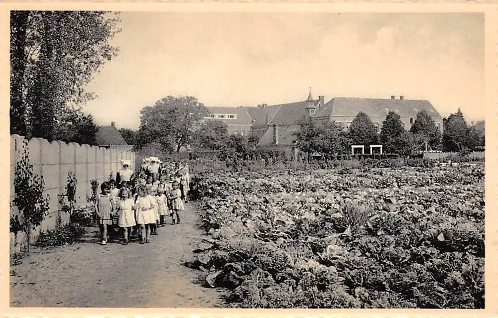 Oryginalny Belgie Ravels O.L. Vrouw van de Kempen Open-lucht-school voor zwakke meisjes Al wandelend door de moestuin Europa HC15663