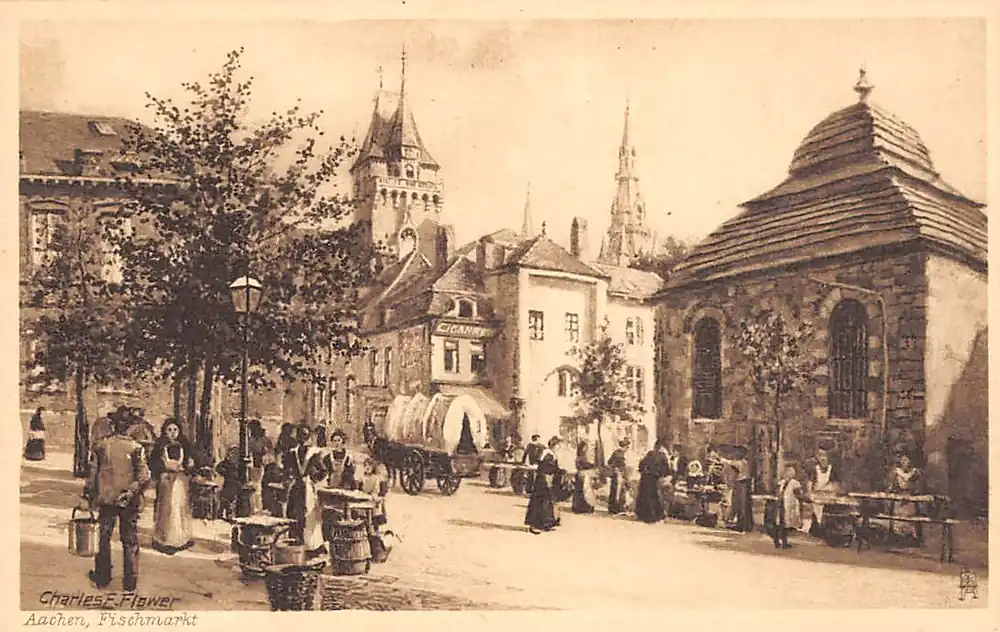 Oryginalny Duitsland Aachen Fischmarkt Illustrator Charles F. Flower Deutschland Europa HC34430