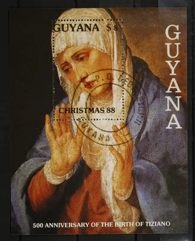 Guyana 1988, Michel 2414 (Blok 26), Schilderij: “Madonna” van Tiziano, gestempeld blok / used