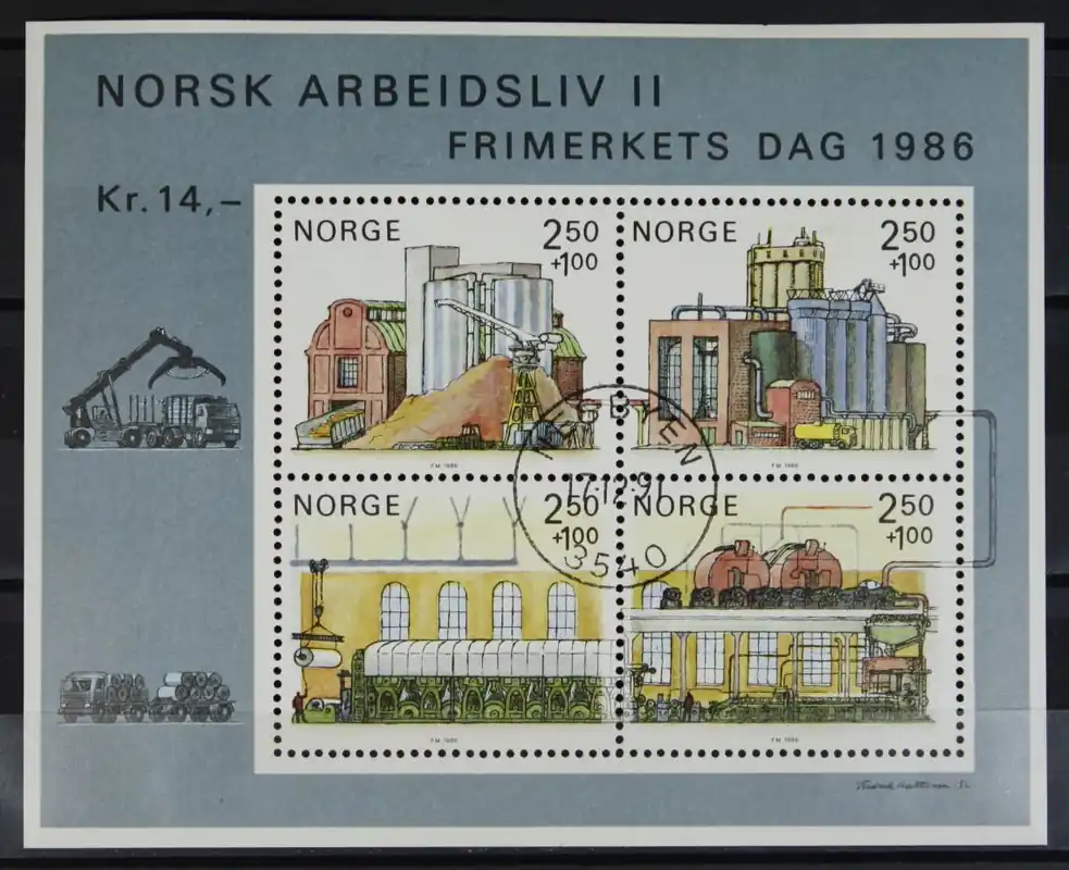 Noorwegen 1986, Mchel Blok 6, Dag v.d. Postzegel: Het Noorse Beroepsleven (II), gestempeld / used