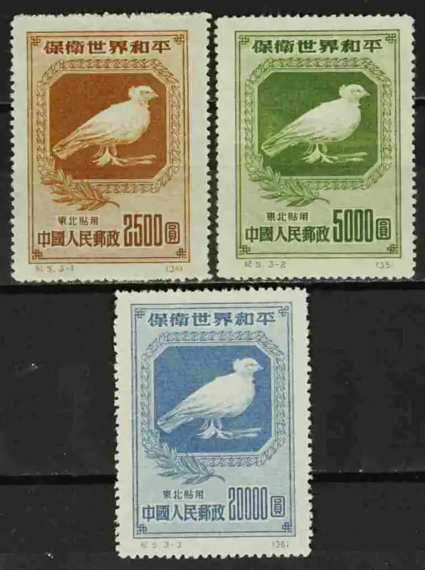 China Volksrepubliek 1950, Michel 57-59 II, Propaganda Wereldvrede, complete serie, postfris / MNHZonder gom, zoals uitgegeven.