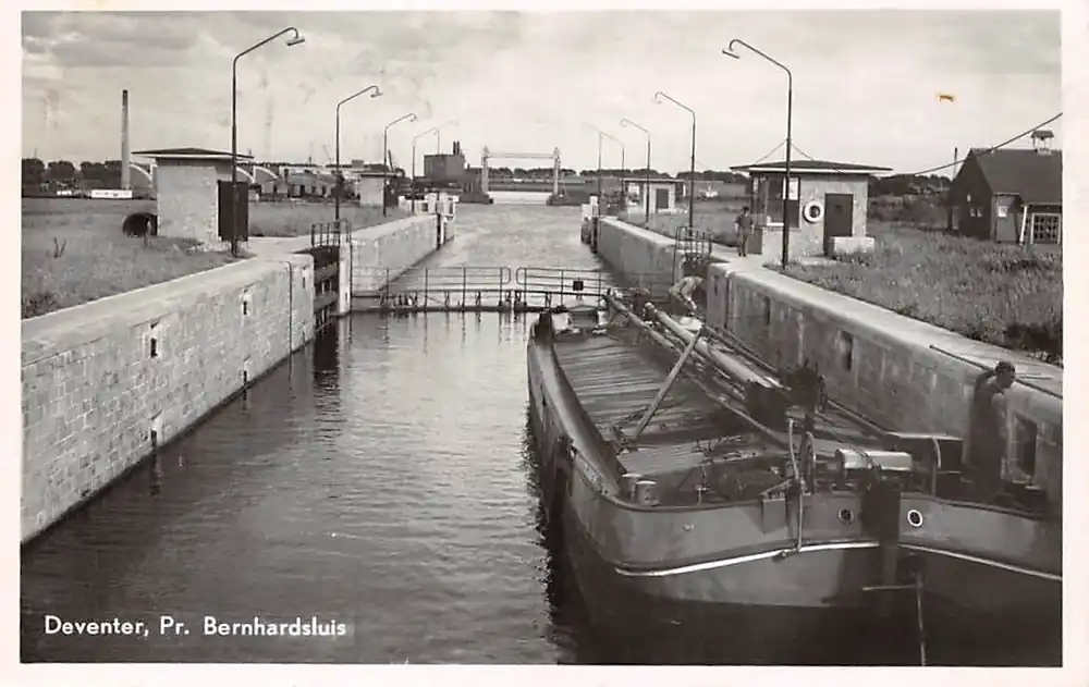 Ostatnia szansa Deventer Pr. Bernhard sluis Binnenvaart schepen Scheepvaart 1953 HC19416