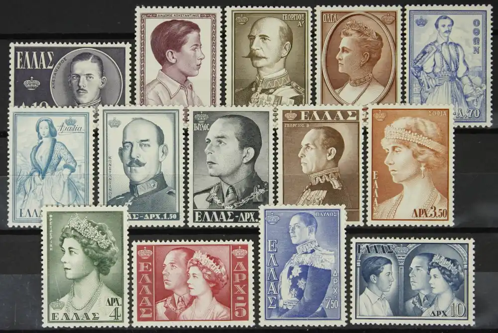Griekenland 1956, Michel 637-650, Griekse Koninginnen en Koningen, complete serie, ongebruikt / MH