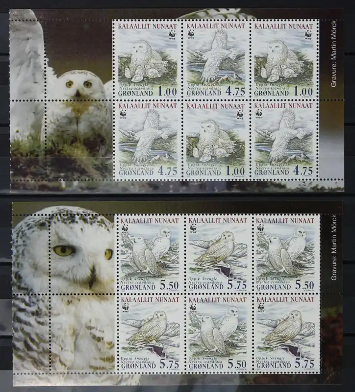 Groenland 1999, Michel 331-334, 2 velletjes uit Postzegelboekje, Natuurbescherming: Sneeuwuilen, postfris / MNH