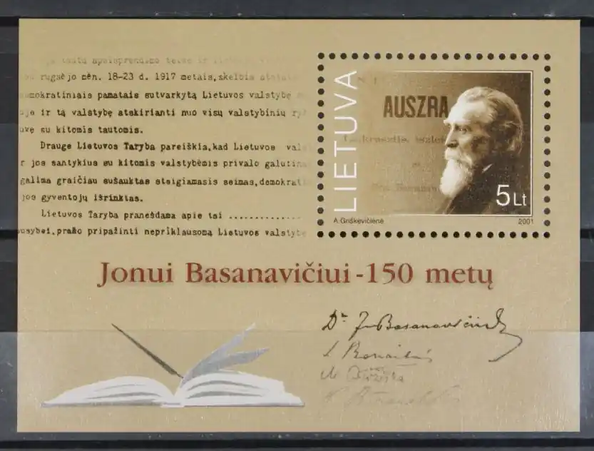 Litouwen 2001, Michel Blok 24, 150e Geboortedag van Jonas Basanavicius, postfris / MNH