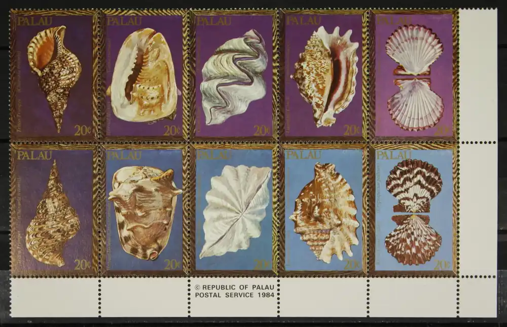 Palau Eilanden 1984, Michel 37-46, Mosselen/schelpen en zeeslakken, complete postfrisse serie in velletje / MNH