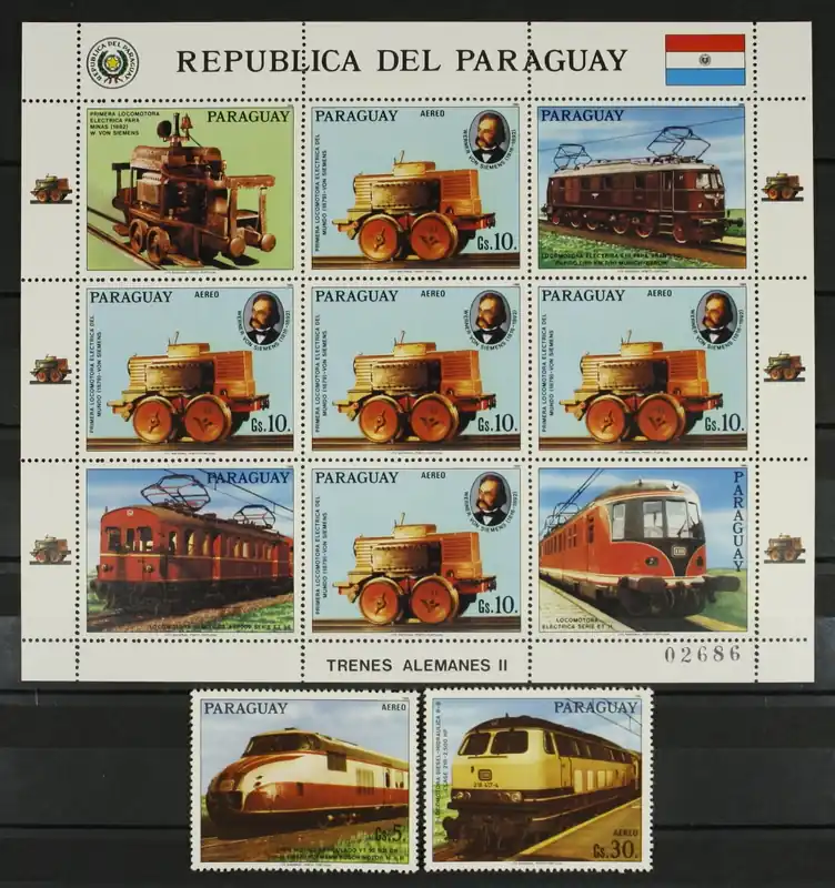 Paraguay 1986, Michel 4025-4027, 150 Jaar Duitse Spoorwegen, 4026 in Kleinbogen, postfris / MNH