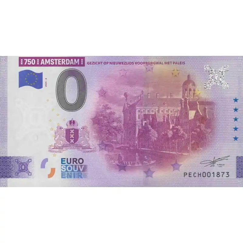 0 Euro biljet Nederland 2025 ‘750 Jr. Amsterdam-Gezicht op Nieuwezijdsburgwal met paleis’ Unc