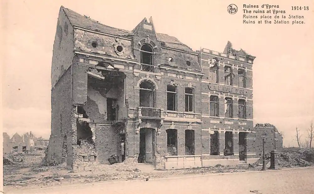 Popularny België Ieper Ruïnes op het Stationsplein Ruins at the Station Place at Ypres 1914-1918 WO1 Vlaanderen Europa HC58226