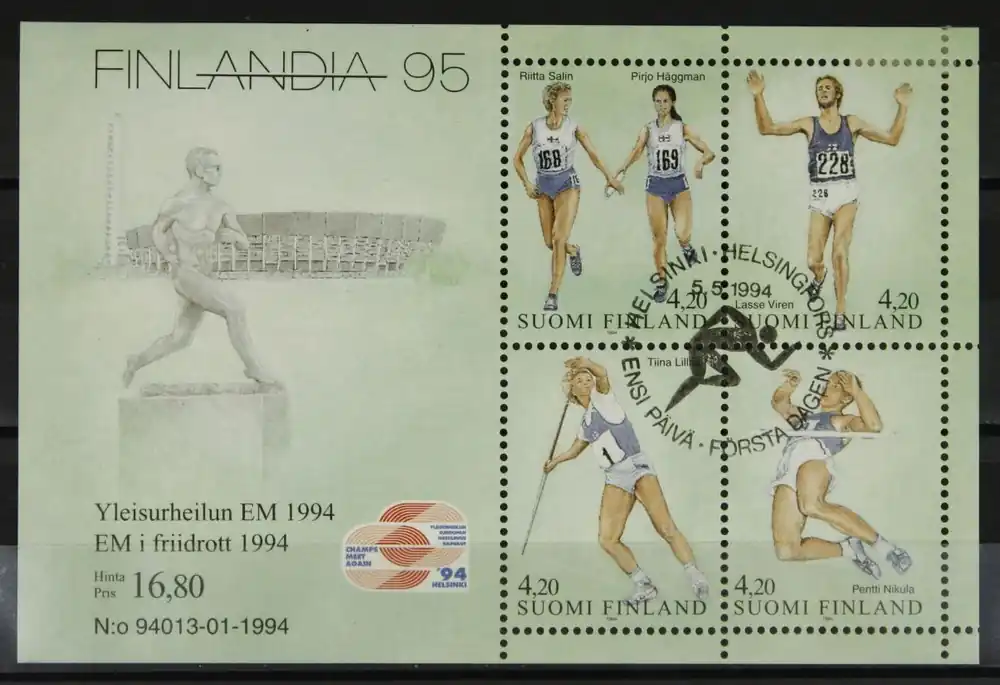 Finland 1994, Michel Blok 12, Int. Postzegeltentoonstelling “Finlandia ’95” / EK Athletiek, gestempeld / used