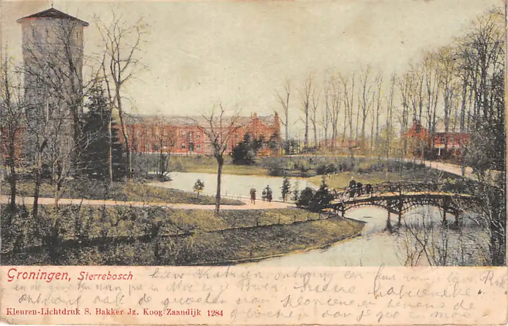 Kleuren-Lichtdruk S. Bakker Jz. 1284. Gelopen ansichtkaart met gedeeltelijke postzegel en stempel 1904.
