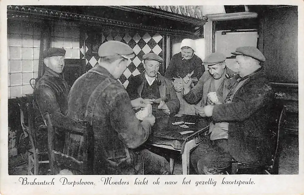 Popularny Noord-Brabant Dorpsleven Kaortspeule in de boerderij Klederdracht Kaartspel Vintage HC3468