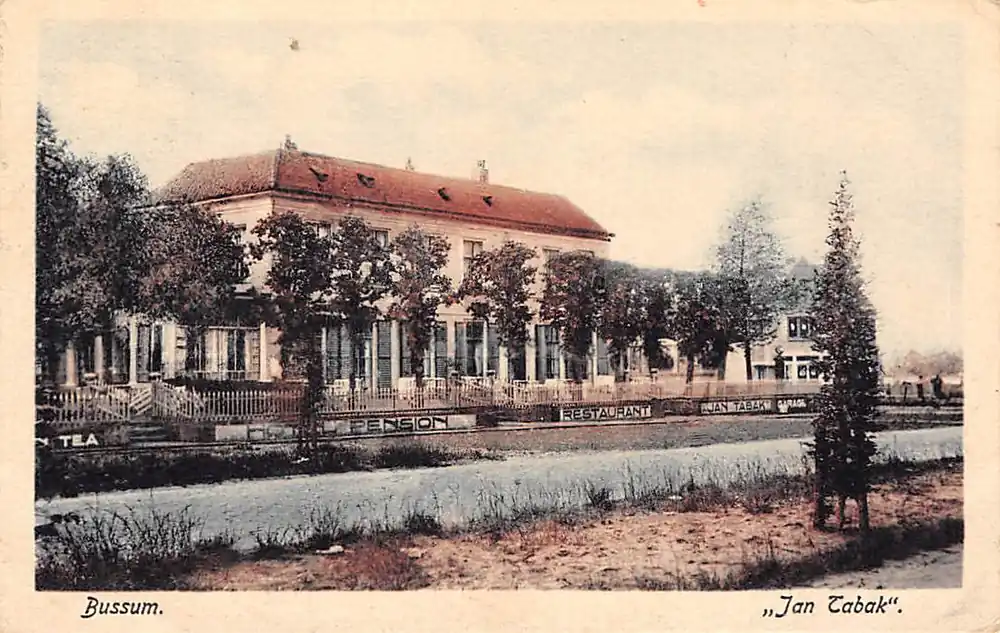 Uitgave J. Sleding. Albumvouwtjes in hoekjes en randje linkerbovenhoekje iets gesleten en lichte knikjes rechter bovenhoekje. Gelopen ansichtkaart met postzegel en stempel Bussum 1928.