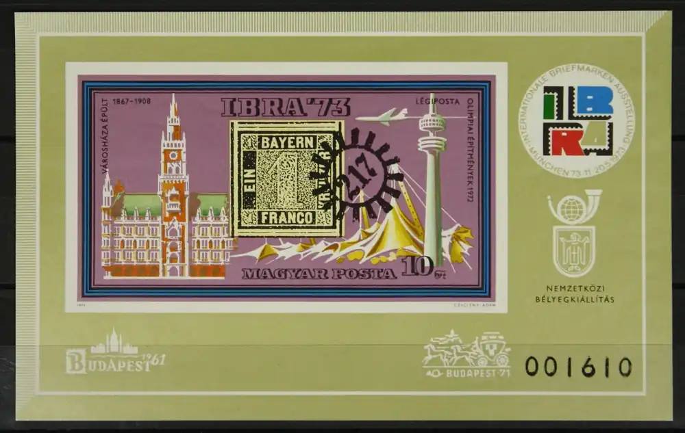 Hongarije 1973, Michel Blok 97 B, Postzegeltentoonstellingen IBRA en POLSKA ’73, ongetand blok, postfris/MNH