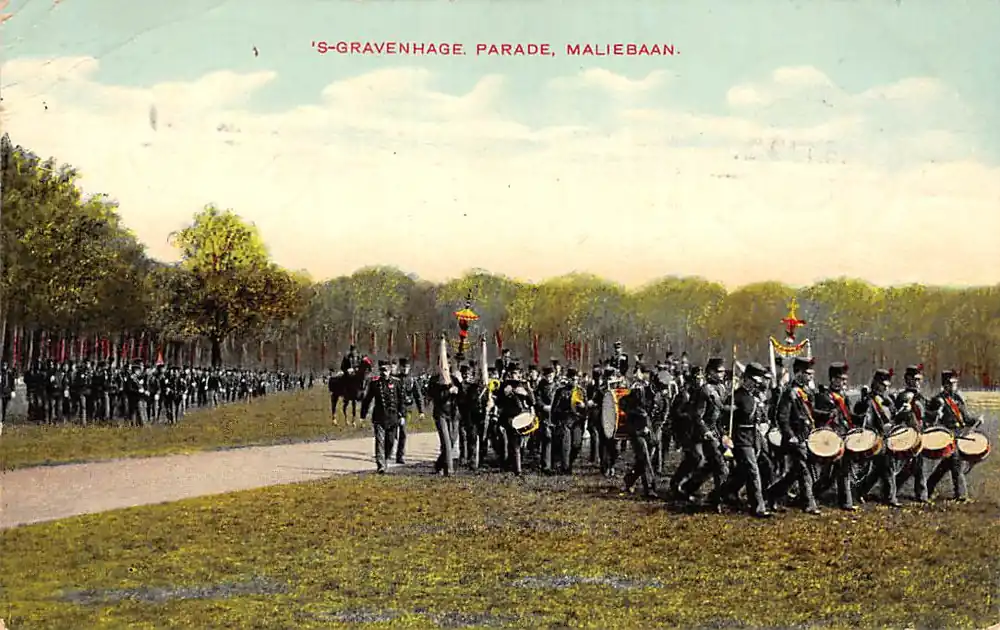 Premium Militair ‘s-Gravenhage Parade Maliebaan Muziekkorps soldaten 1910 HC9681
