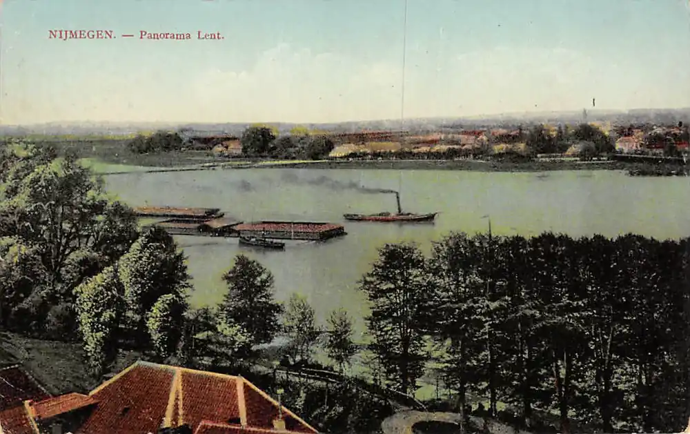 Premium Nijmegen Panorama Lent Binnenvaart schepen Scheepvaart 1912 HC16002