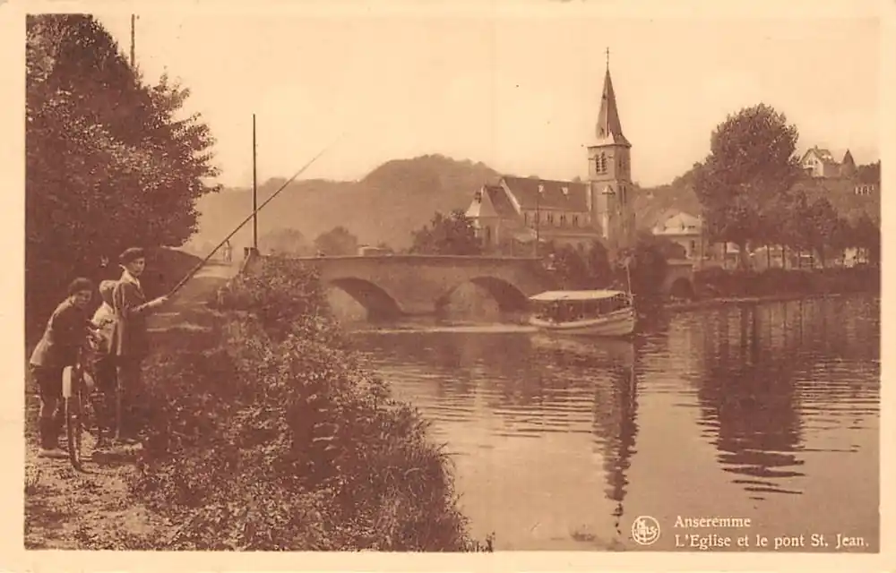 Promocja België Anseremme L'Eglise et le pont St. Jean Hengelaar Sport visser Dinant Namen Europa HC52183