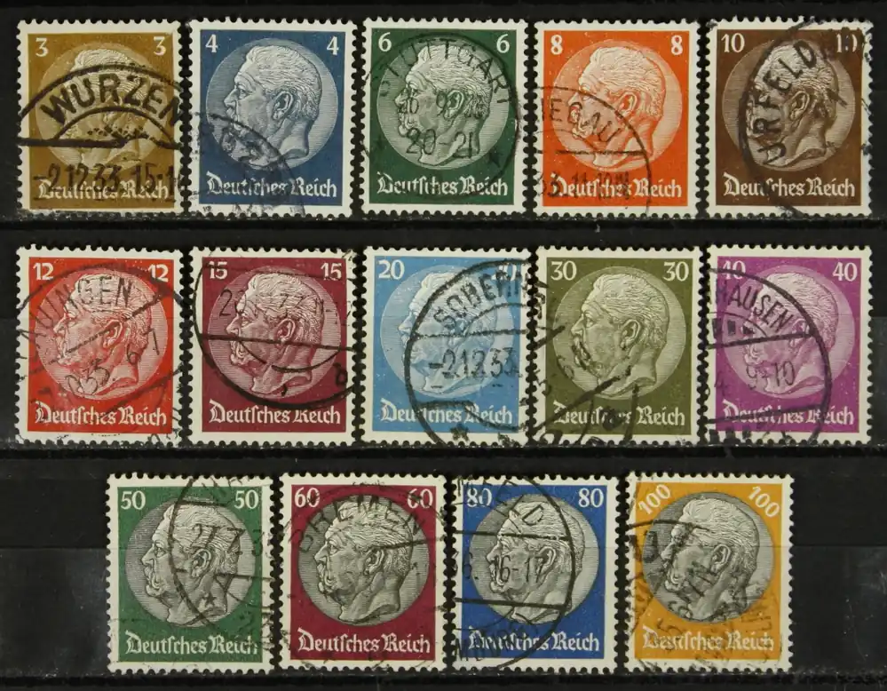Deutsches Reich 1933, Michel 482-495, Von Hindenburg (veranderde kleuren en nieuwe waardes), complete serie, gestempeld / usedWatermerk 2 (Wafels)