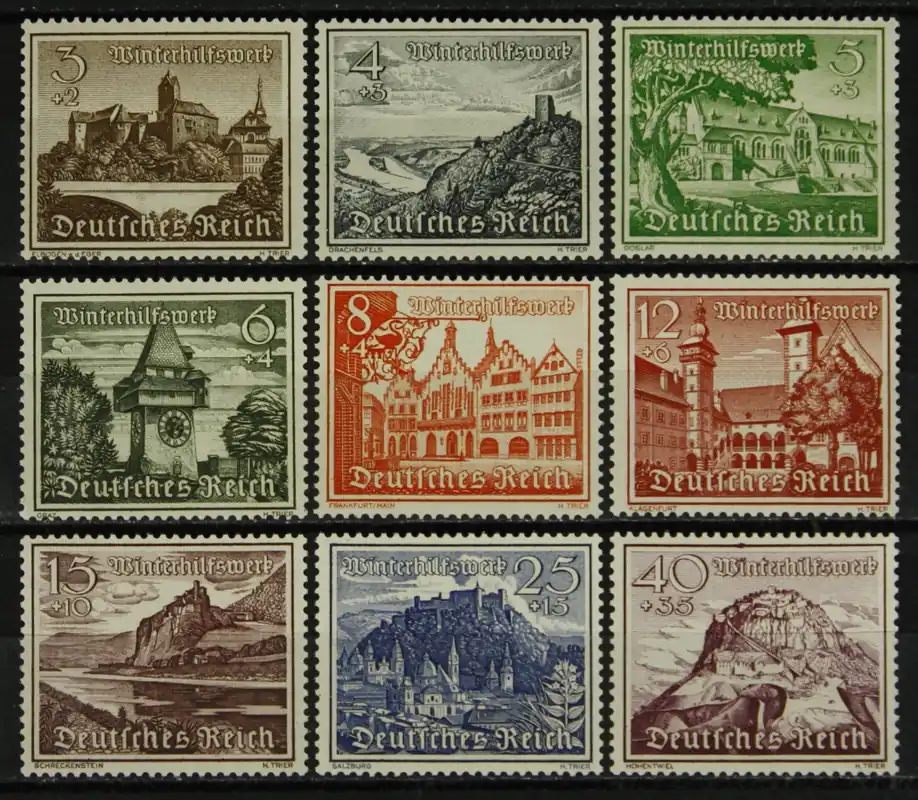 Deutsches Reich 1939, Michel 730-738, Winterhulp: Bouwwerken, complete serie, postfris / MNH