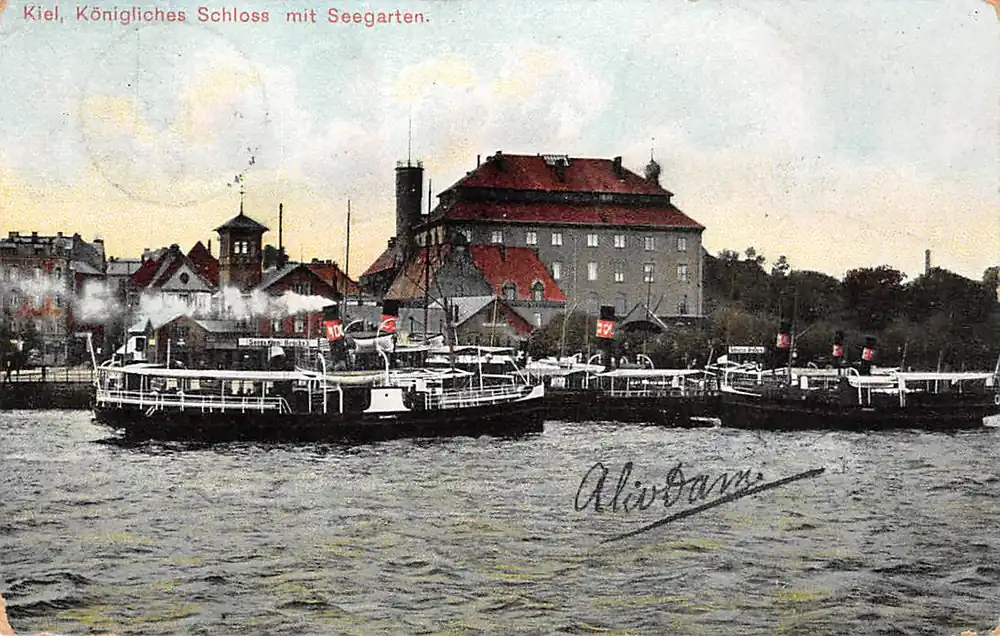 Promocja Duitsland Kiel Konigliches Schloss mit Seegarten Schepen Scheepvaart 1908 Deutschland Europa HC11636