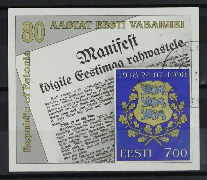 Estland 1998, Michel Blok 11, 80e Verjaardag van de Proclamatie v.d. Republiek, gestempeld / used
