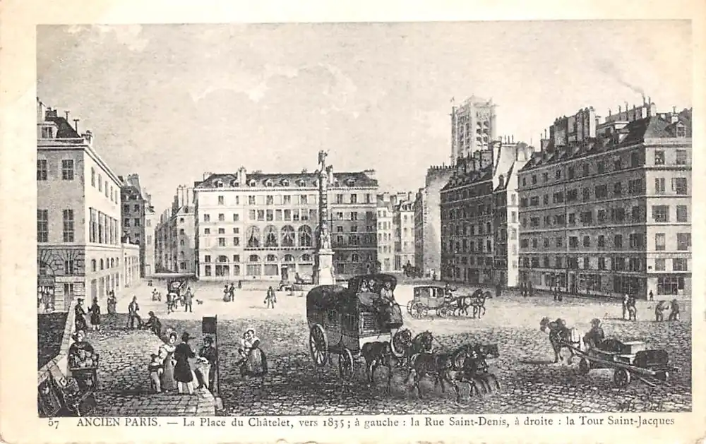 Promocja Frankrijk Ancien Paris La Place du Chatelet, vers 1835; a gauche la Rue Saint-Denis, a droite la Tout Saint-Jacques France Europa HC52348