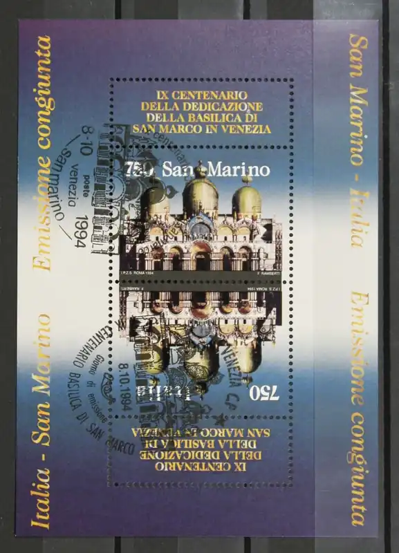 San Marino 1994, Michel Blok 19, Cultuur- en Kunst Erfgoed in Italië, gestempeld / used