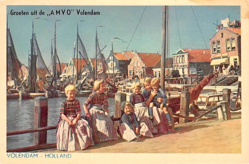 Promocja Volendam Moeder en kinderen bij de haven 1952 Reclame Groeten uit de AMVO Café Restaurant Klederdracht Visserij HC61826