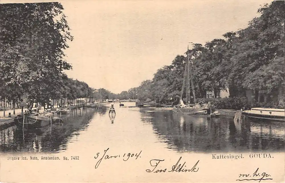 Rabat Gouda Kattensingel en Regentesseplantsoen binnenvaart schepen 1904 HC2099