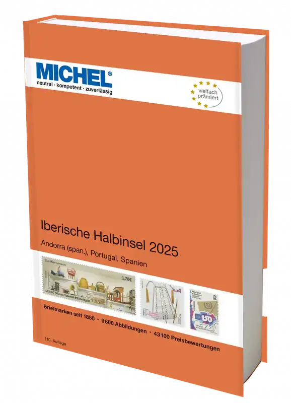 Michel Europa catalogus deel 4: Iberisch Schiereiland 2025 (E4)Dit is de 4e band uit de reeks Michel Europa catalogi.110e editie, uitgave 4 april 2025. Hardcover met 966 pagina’s, ruim ca. 9.200 afbeeldingen in kleur en ca. 41.000 prijsnoteringen.Inhoud: Spaans Andorra, Portugal en Spanje