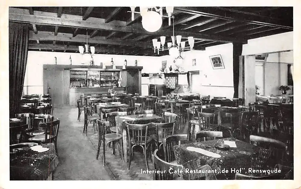 Uitg. C. Bos, Café-Rest. de Hof, Renswoude. Gelopen ansichtkaart met postzegel en stempel 1961.