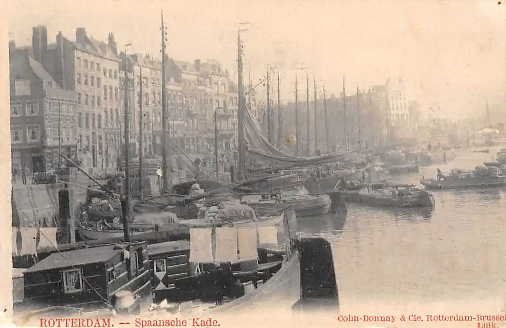 Rotterdam Spaansche Kade 1900 Binnenvaart schepen Scheepvaart HC12488 Tani