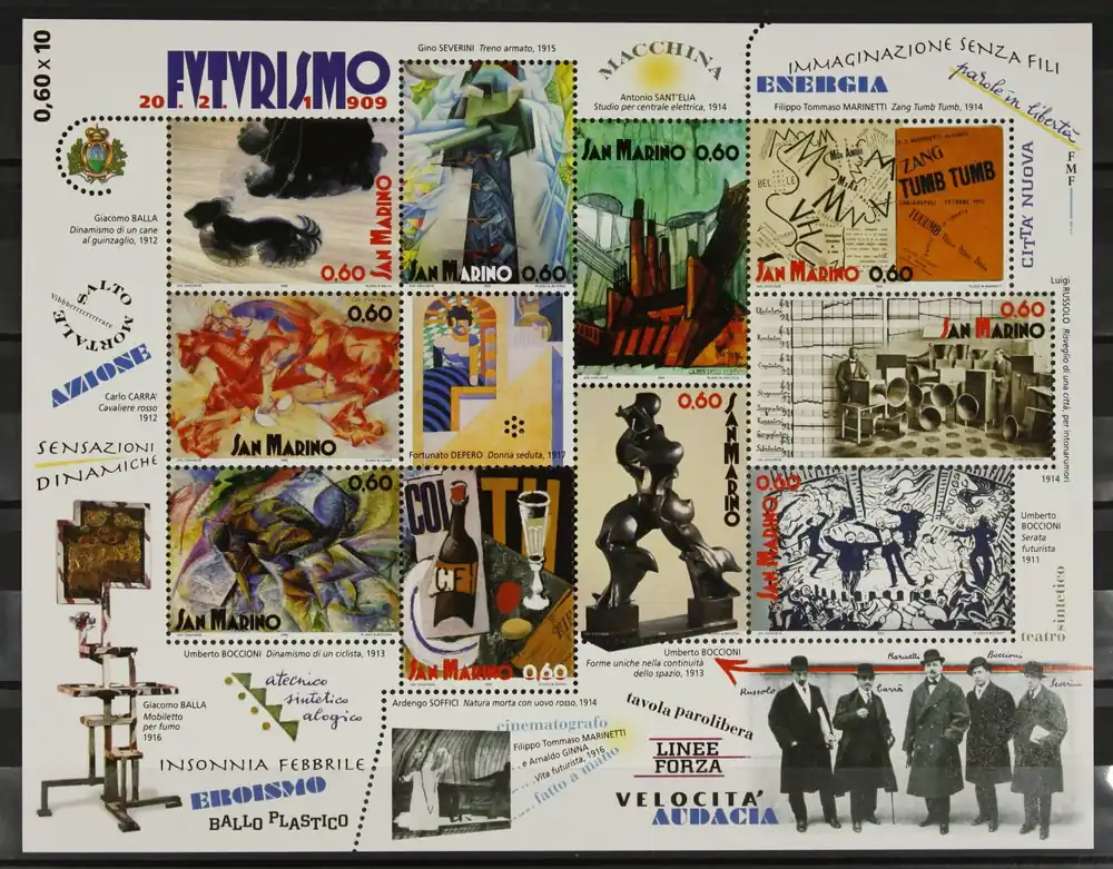 San Marino 2009, Michel 2372-2381 (Kleinbogen), 100 Jaar Futuristisch Manifest van Marinetti, postfris / MNH